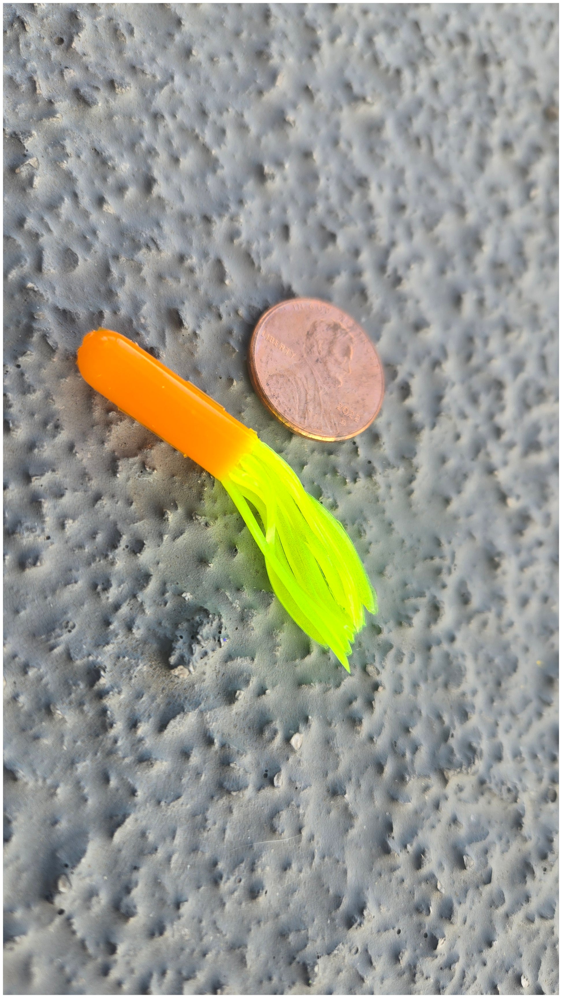 This orange and chartreuse tube will have you reeling in pan fish, trout and bass & more!
